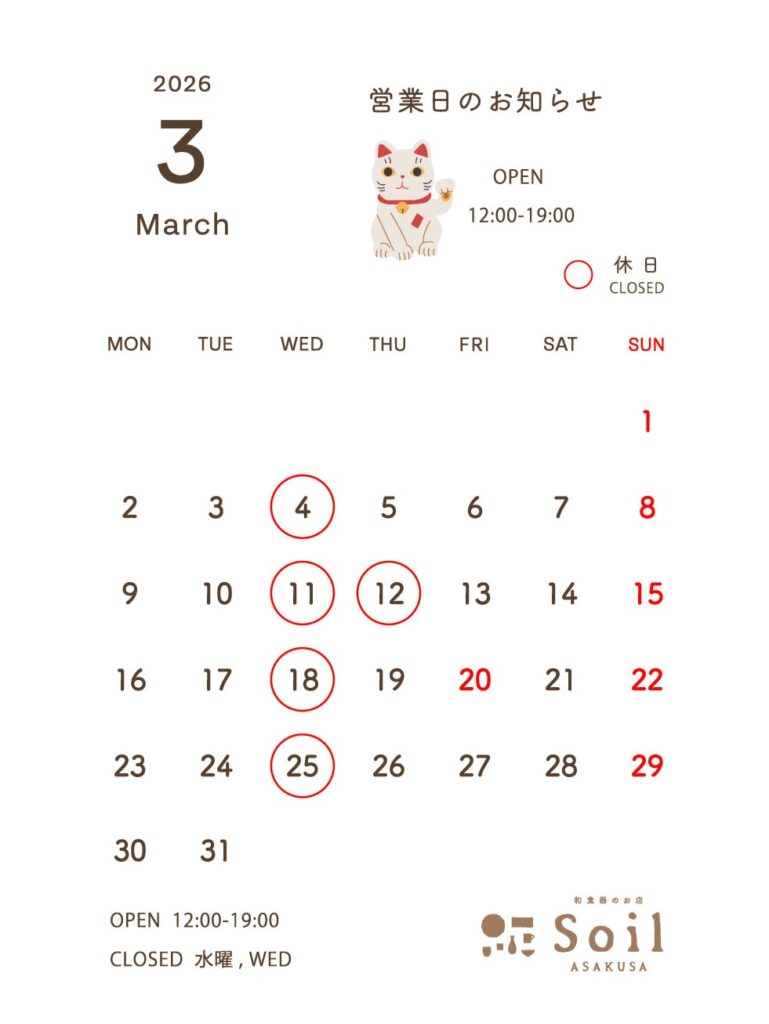 In June 2020, Soil ASAKUSA was newly opened as a Japanese tableware shop in ASAKUSA-KAPPABASHI area, Tokyo. Each item is handmade and came from many parts of Japan, has been created by skilled craftsman with care and love. Please find something your favorite that keep you worm and bright up your daily life.
